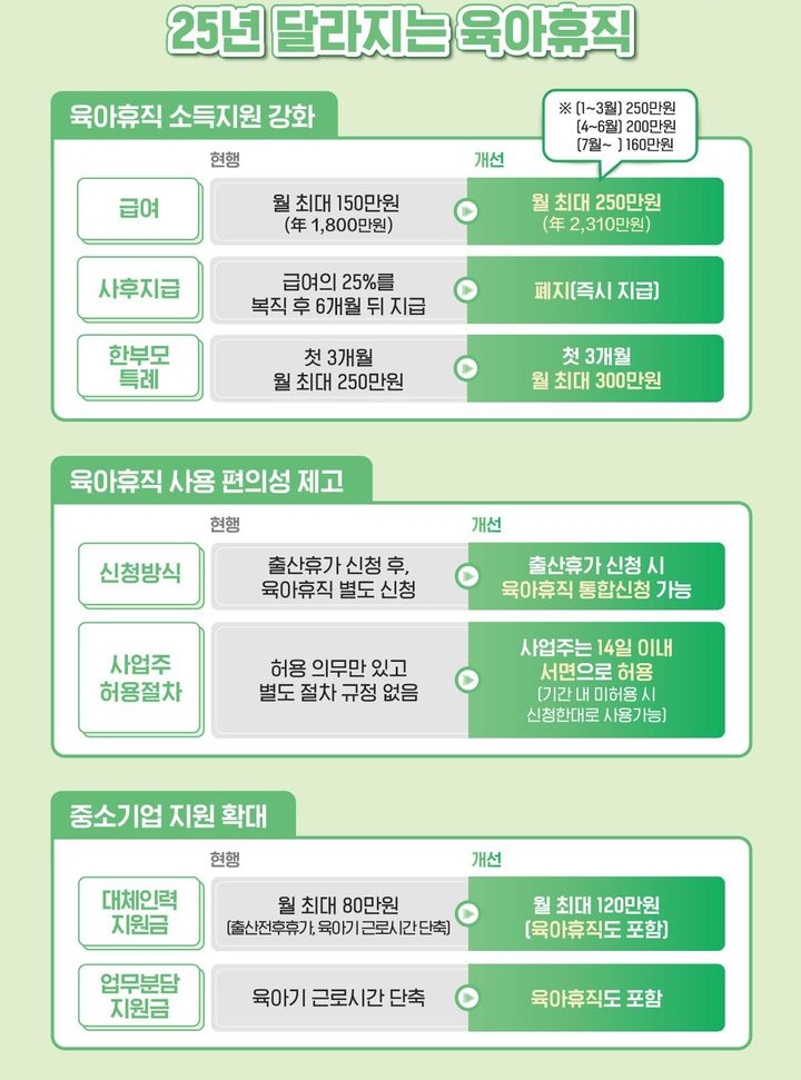 육아휴직 급여 인상! 내년부터 최대 250만 원, 달라지는 정책 총정리 하기로 했습니다. 많은 부모님들이 기다려온 소식이죠. 2025년부터 육아휴직 급여가 대폭 인상된다는 소식이 들려왔어요. 이번 포스팅에서는 그 변화의 배경과 구체적인 내용, 그리고 신청 방법까지 자세히 알아보도록 할게요.
