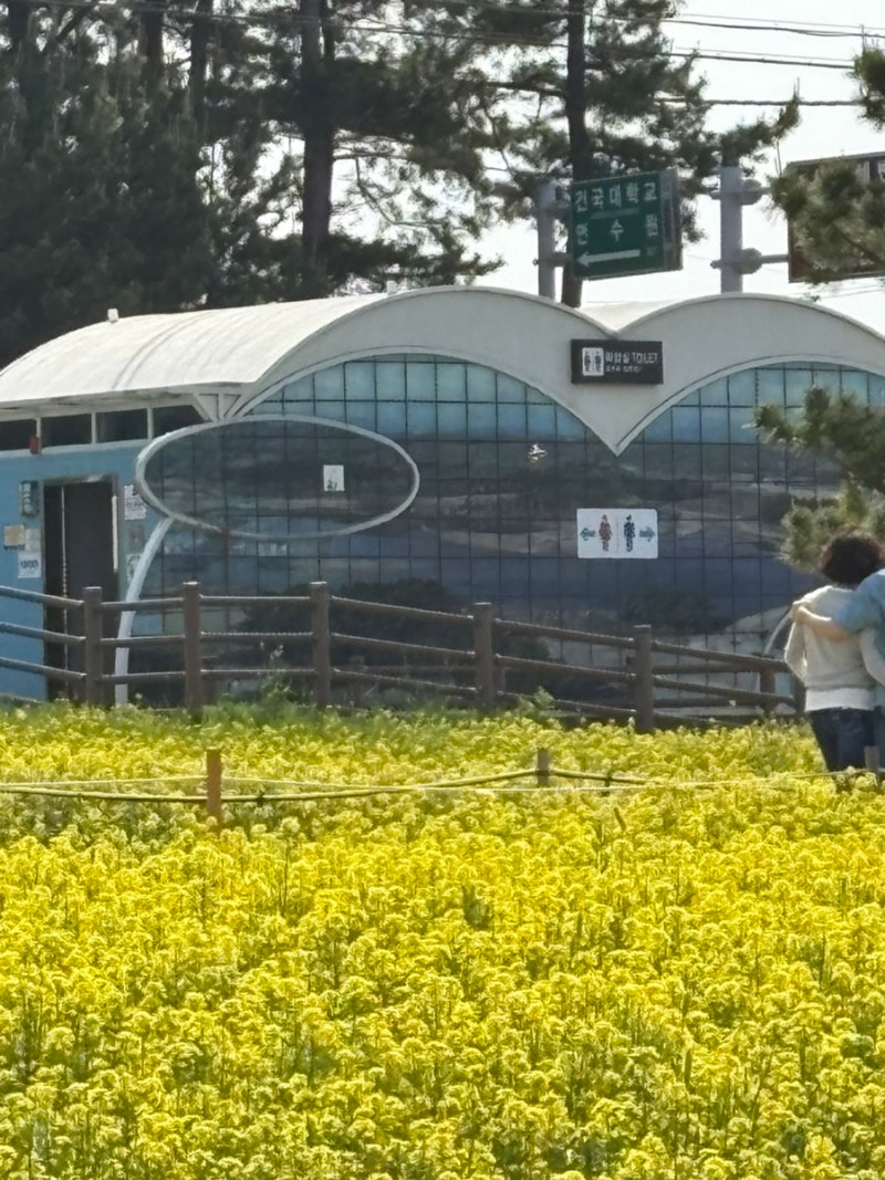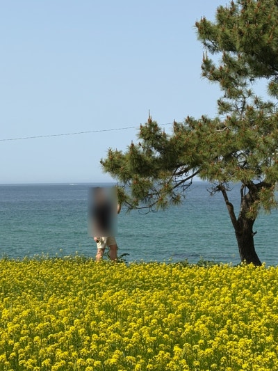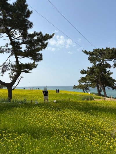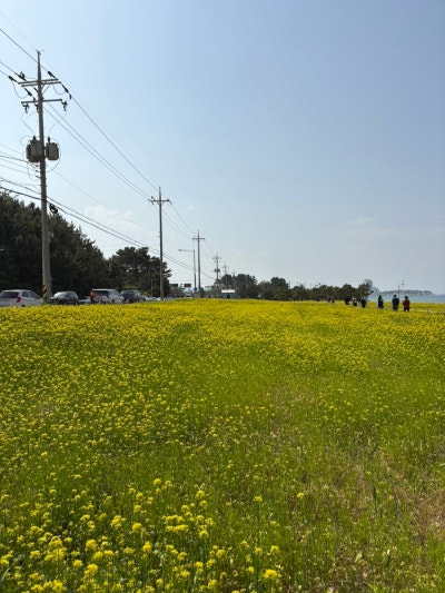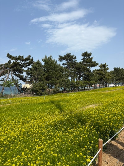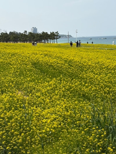 바다랑 같이 있는 유채꽃,, 미쳤어요